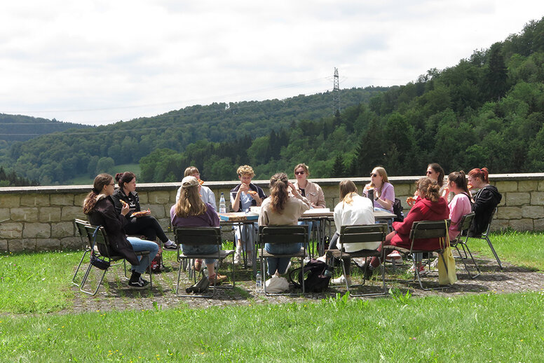 In einwöchigen Exkursionen lassen sich Studierende der katho am Beispiel der historischen Massenmorde, die 1940 in Grafeneck verübt wurden, auf die zerstörerische Entmenschlichung ein, die im Nationalsozialismus (1933-1945) systematisch stattfand. Das Dokumentationszentrum der Gedenkstätte bietet vor Ort auf der Schwäbischen Alb geschichtspädagogische Workshops an. Sie umfassen Führungen, die auch von Bewohner_innen der sozialpsychiatrischen Einrichtung, die heute auf dem Gelände der ehemaligen Tötungsanstalt besteht, durchgeführt werden.