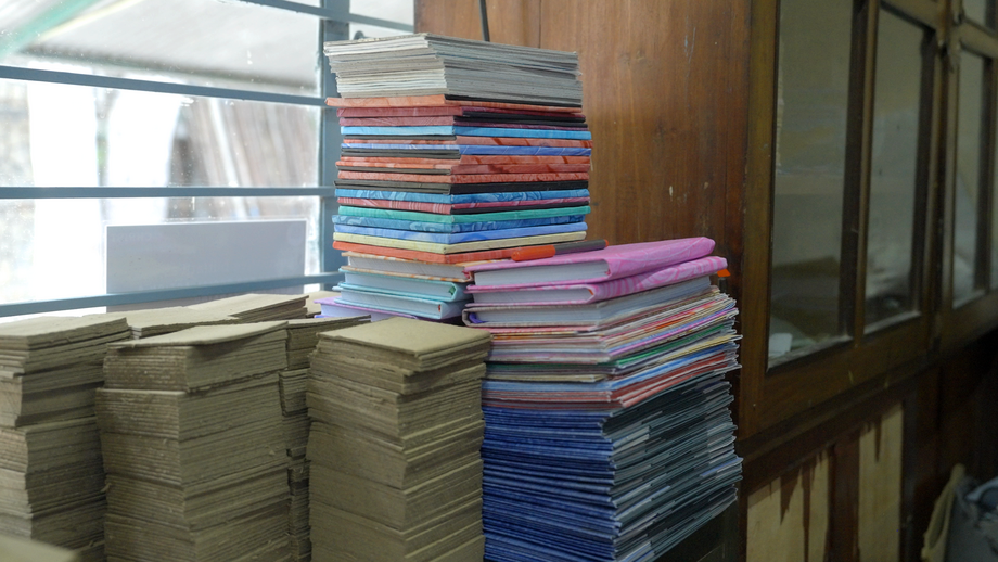 Aus den Papierabfällen, die sich jeden Tag in großen Mengen auf dem Campus ansammeln, werden so täglich neue Schreibhefte und weitere Lernmaterialien hergestellt. Diese werden in einem Laden auf dem Campus verkauft.